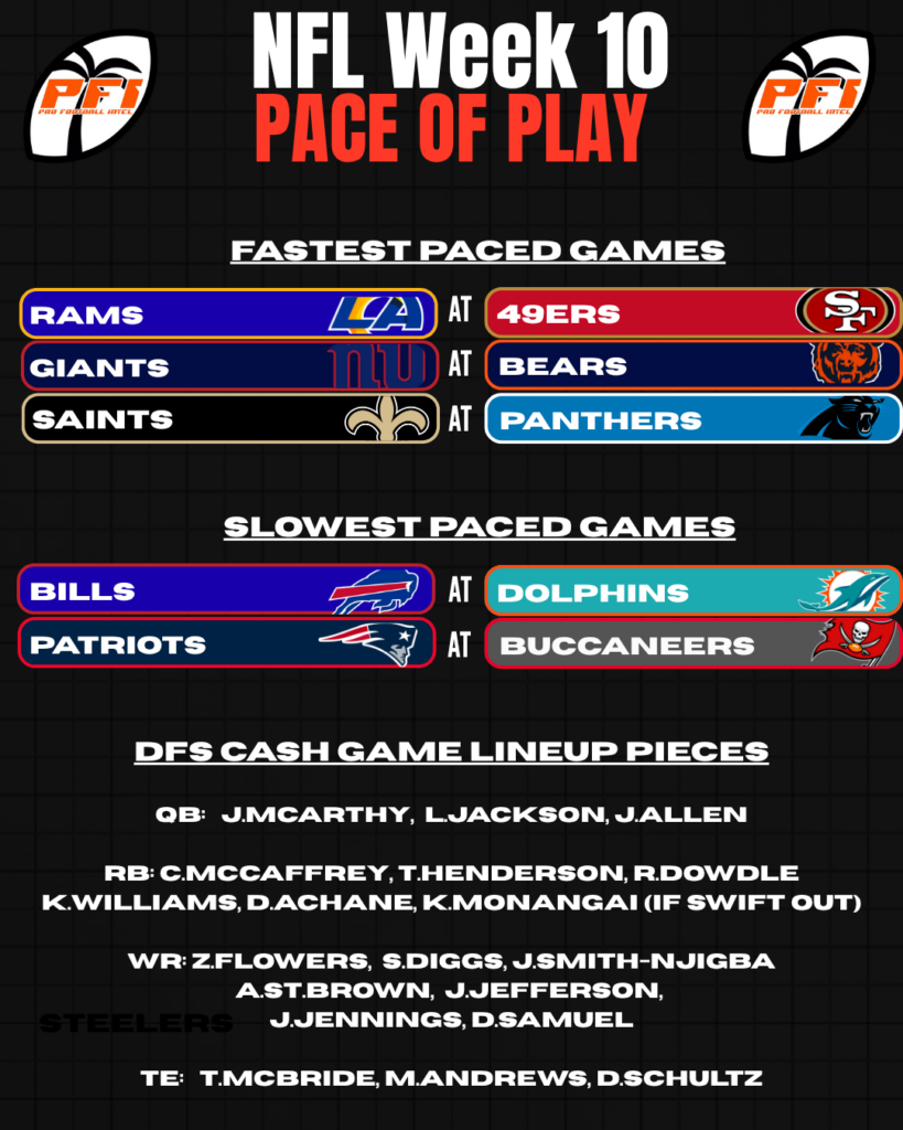 2025 Fantasy Football Pace of Play Week 10: Games to Target, Avoid