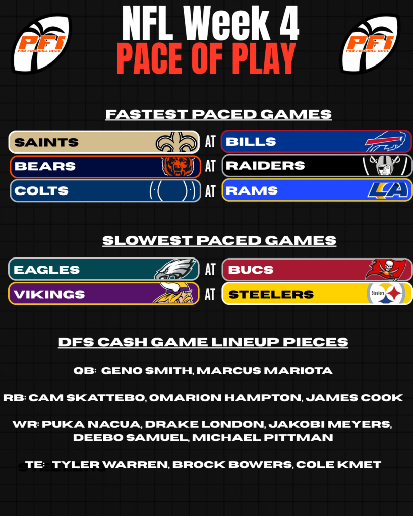 2025 Fantasy Football Pace of Play Week 4: Games to Target, Avoid