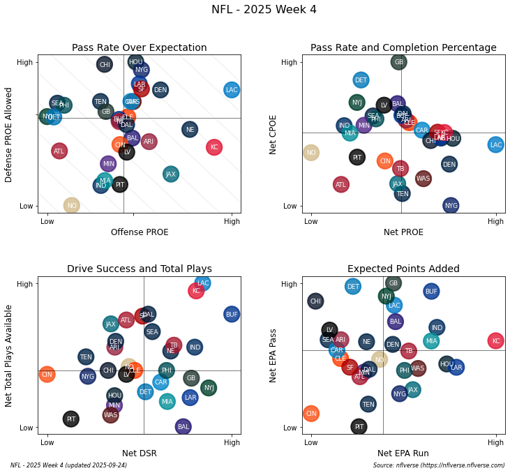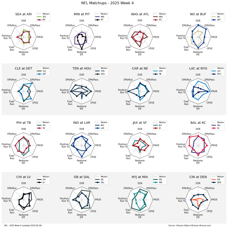 Welcome to Week 4. The first official week of the NFL season where we have a representative sample of data to draw from to inform our predictions. Itâs a glorious thing.